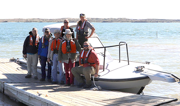 The FOTWW-COE “stopover habitat” team made its sixth visit at Fort Peck Lake and Dam in Montana. With a volume of 18,700,000 acre feet when full, Fort Peck is the fifth largest artificial lake in the United States. It extends 134 miles through central Montana, and its twisting, inlet-studded shoreline has a total length of some 1,520 miles. The lake covers an area of 245,000 acres, making it the largest in Montana by surface area,